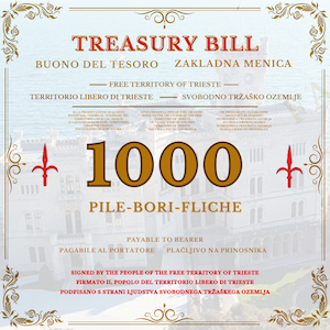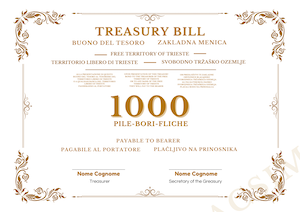 The Treasury Bond serves to give confidence to the Nation of the Free Territory of Trieste and is remunerated with an annual interest of 10%.